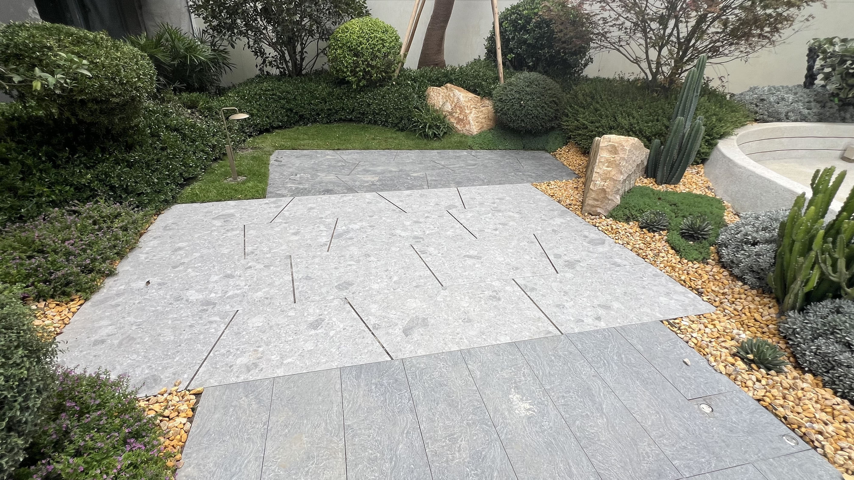 別墅,庭院的鋪裝材料,已經(jīng)越來越多的從石材轉(zhuǎn)變?yōu)槭⒋u。